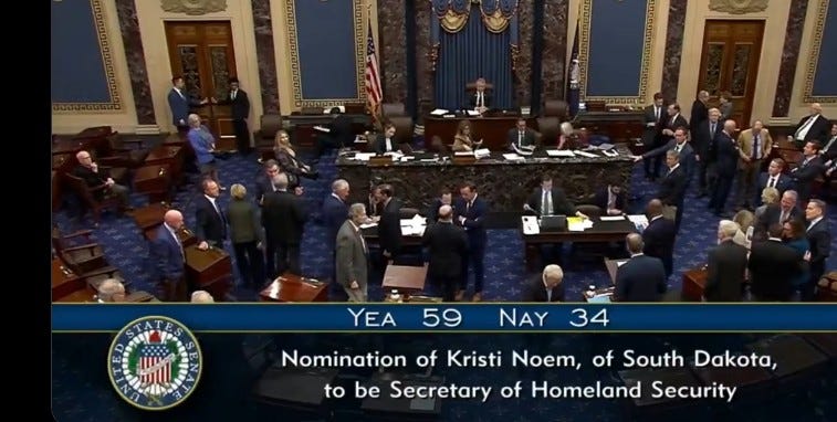 Instead, six Senate Democrats voted for Noem, who has no DHS experience but was the governor of South Dakota, and made her confirmation a bipartisan vote of 59-34.