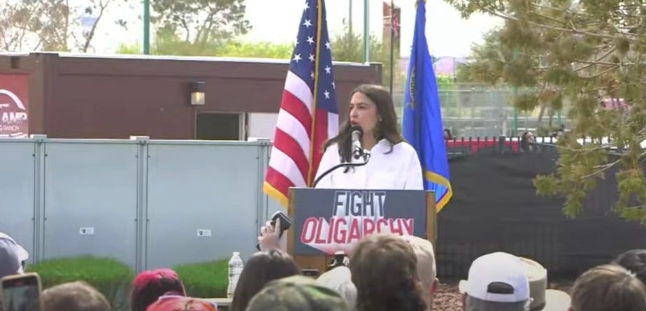 In case anyone needed more proof that there is something special happening at the grassroots level in the United States right now, take a moment and watch part of Rep. Alexandria Ocasio-Cortez’s speech at the Las Vegas Fighting Oligarchy rally.