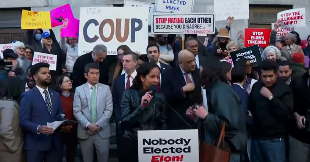 We just tried to enter the Treasury building as members of Congress, and we will because we need to provide oversight to Elon Musk and his team. We don't know what they're doing behind these closed doors. The people deserve transparency. The fact that an unelected billionaire has all your private information is a problem.