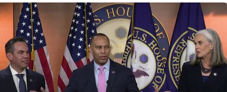 House Democratic leadership (Democratic Leader Hakeem Jeffries, Whip Katherine Clark, and Caucus Chair Pete Aguilar) released a statement after the vote: